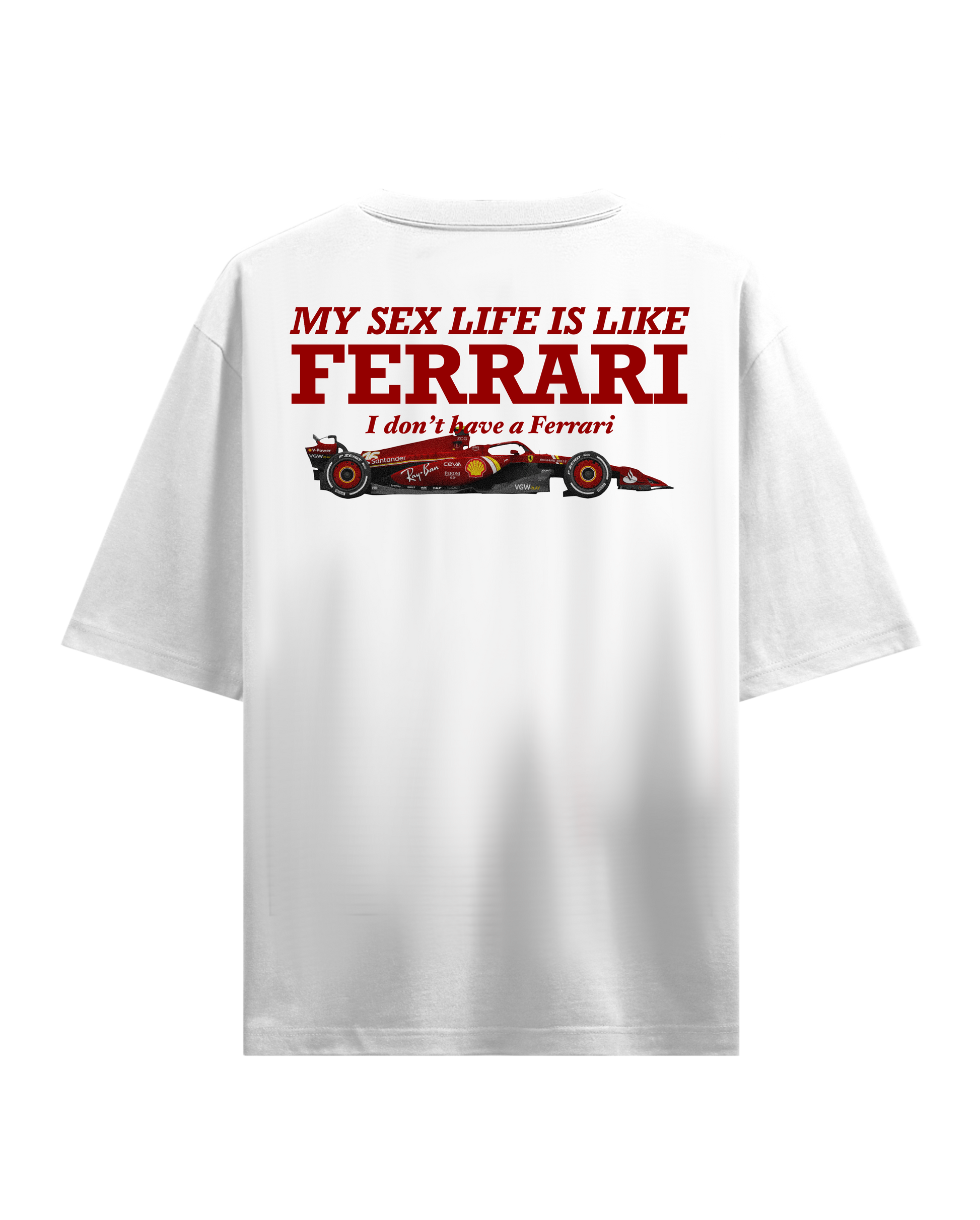 MY SEX LIFE IS LIKE FERRARI OVERSIZED WHITE T-SHIRT